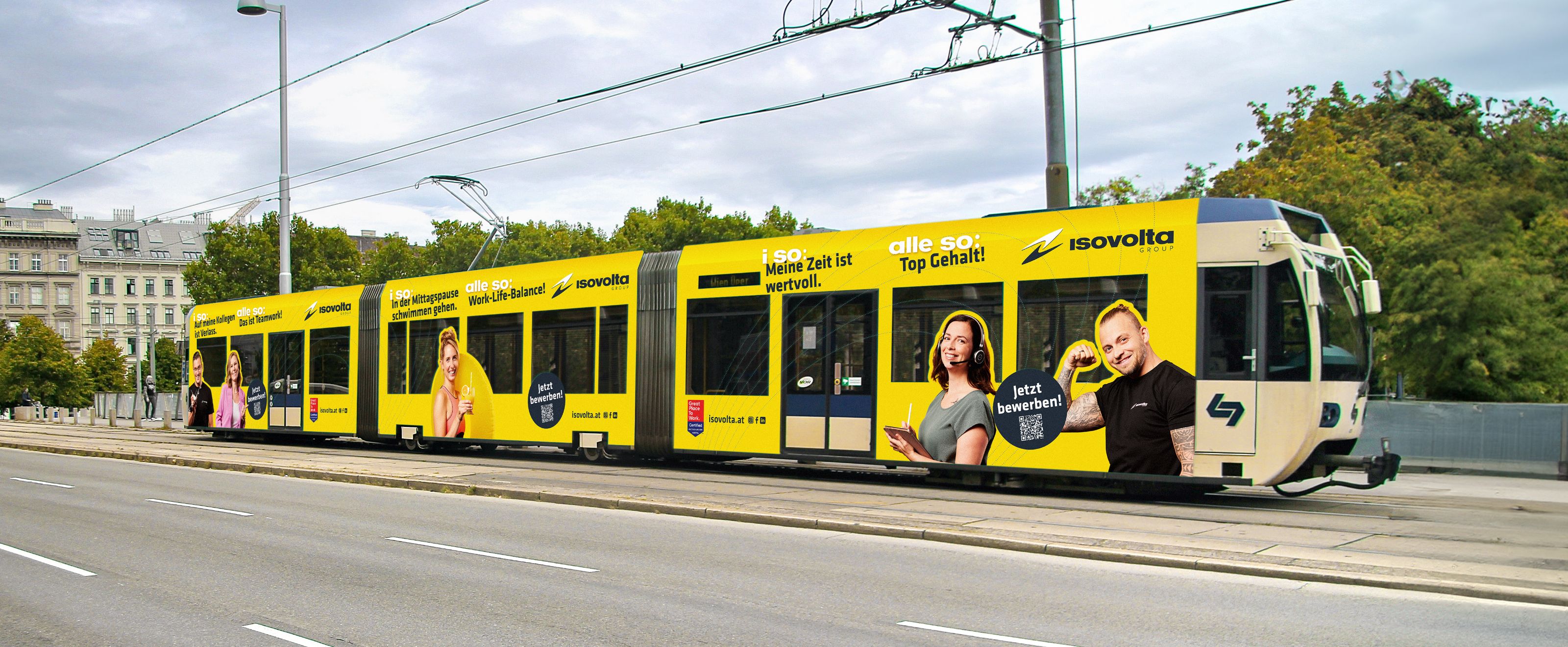 To advertise what a great place ISOVOLTA is to work, we created a recruitment campaign featuring employees and an engaging headline system to attract attention. As part of our media strategy, we branded the Badnerbahn, which runs from central Vienna directly to the company’s headquarters in nearby Wiener Neudorf.