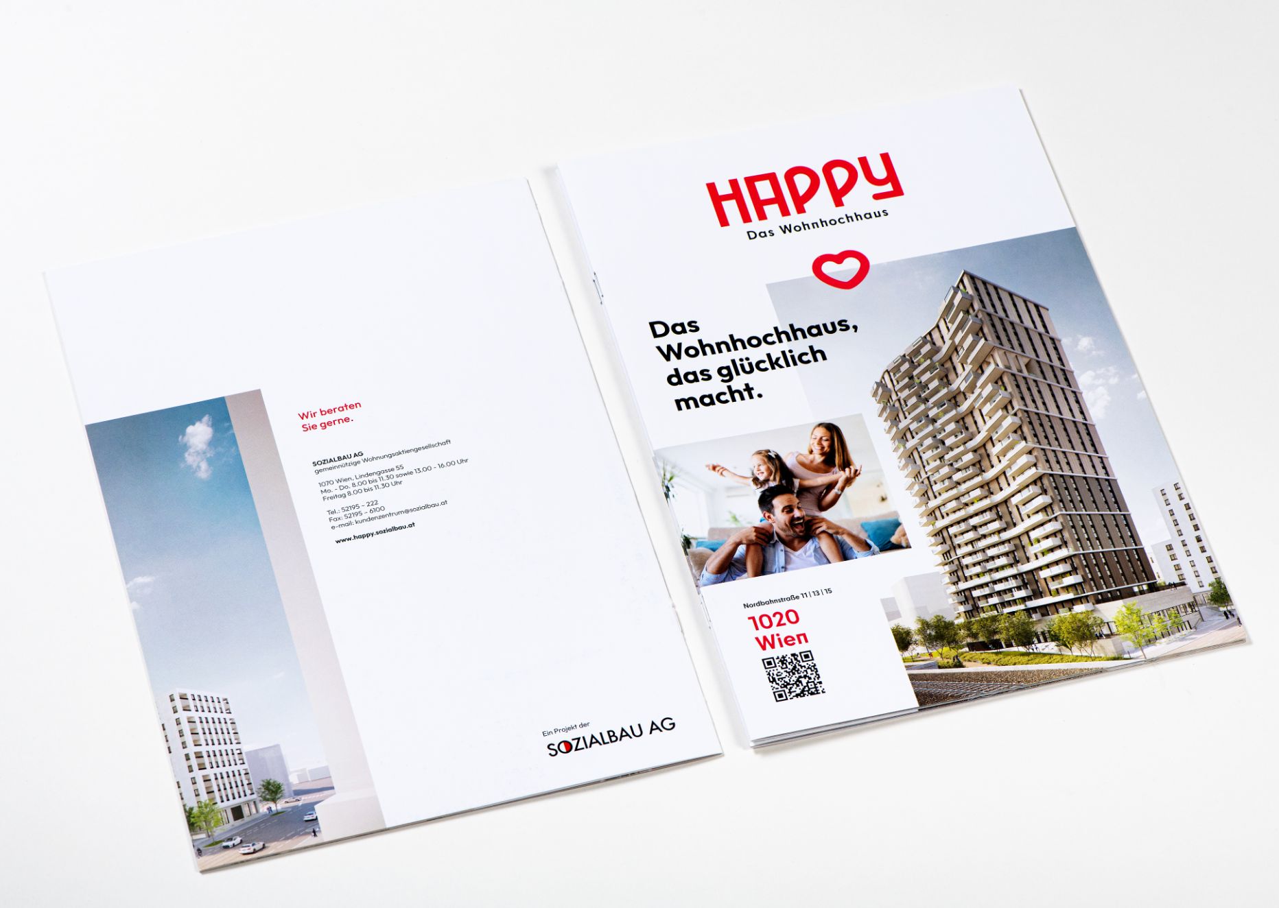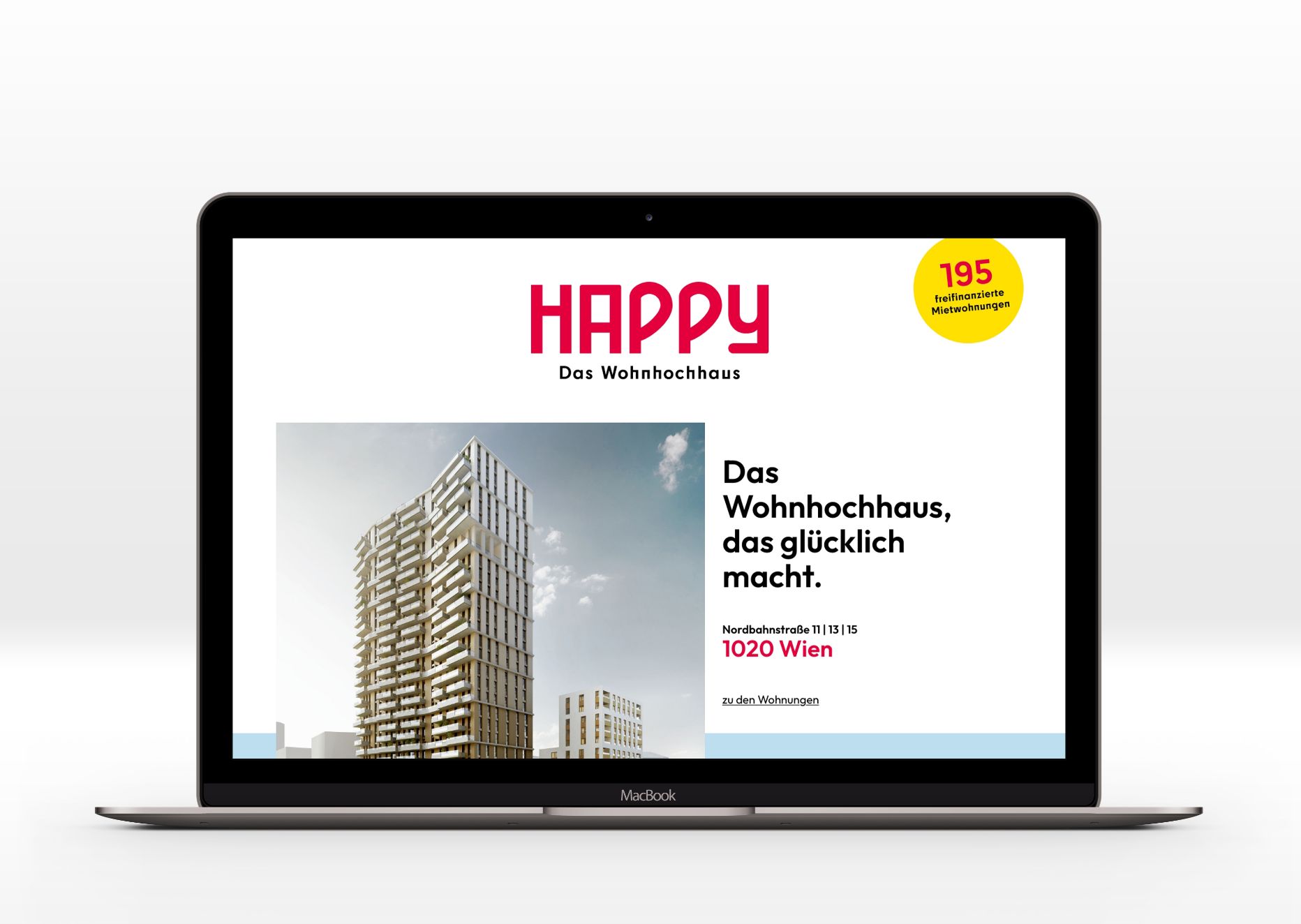 Happy is the first-ever skyscraper built and managed by SOZIALBAU AG. Our inspiration for the branding and design was to communicate the happiness that living in such a great apartment and area brings to residents.